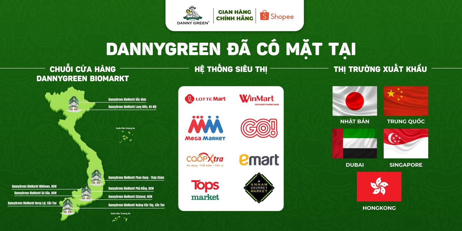 Tính đến năm 2025, hệ thống DannyGreen BioMarkt đã có 09 cửa hàng tại TP.HCM, Cần Thơ, Hà Nội, Bắc Ninh và tiếp tục mở rộng tại các tỉnh thành lớn để phục vụ nhu cầu của người tiêu dùng Việt. Mỗi cửa hàng không chỉ là điểm bán lẻ, mà còn là nơi truyền tải giá trị sống xanh, tiêu dùng có trách nhiệm và lối sống thuận tự nhiên – đúng với triết lý mà DannyGreen theo đuổi.