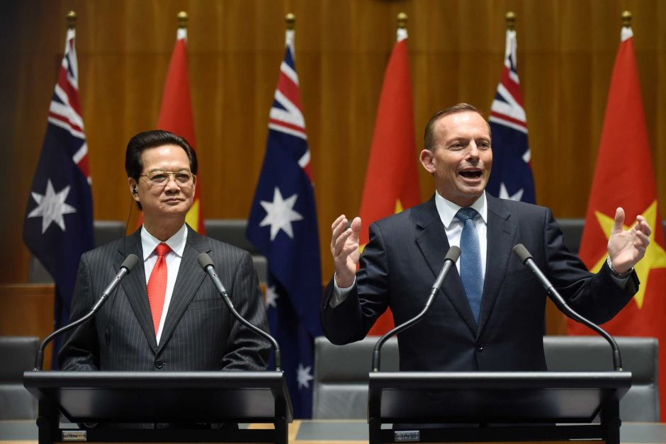 Thủ Tướng Úc Tony Abbott và Thủ Tướng Việt Nam Nguyễn Tấn Dũng, tại Thủ Đô Canberra, ngày 18/3/2015