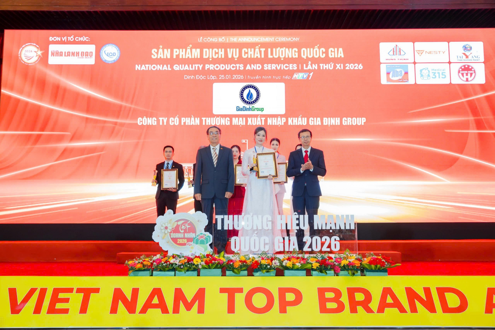 Đại diện Gia Định Group Ông Phạm Quốc Việt lên nhận giải thưởng Top 12 Thương hiệu mạnh Quốc gia 2026